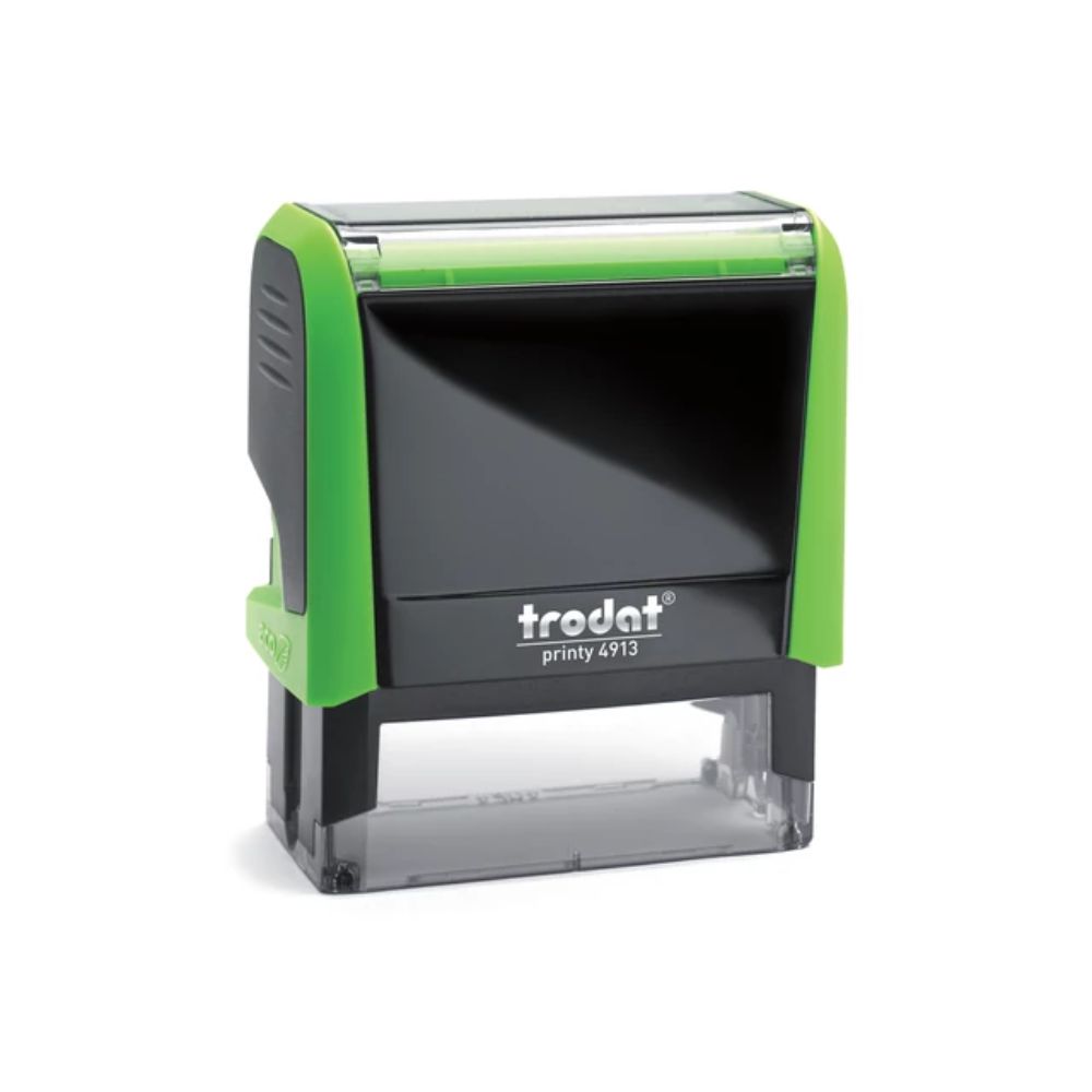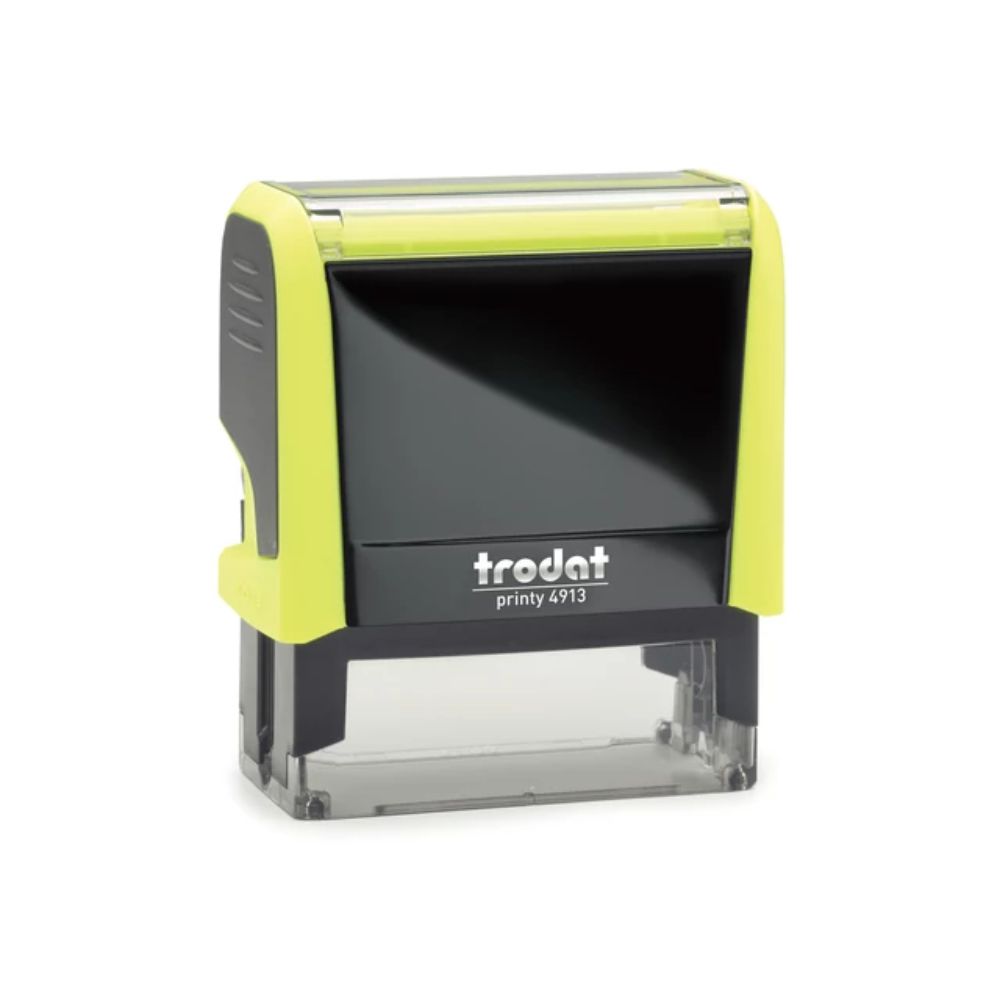 A Trodat Printy 4913 többféle élénk házszínben elérhető, így nemcsak praktikus, hanem stílusos kiegészítője is lehet az irodának. A modern, lekerekített formavilág ergonomikus fogást biztosít, miközben esztétikus megjelenést ad.